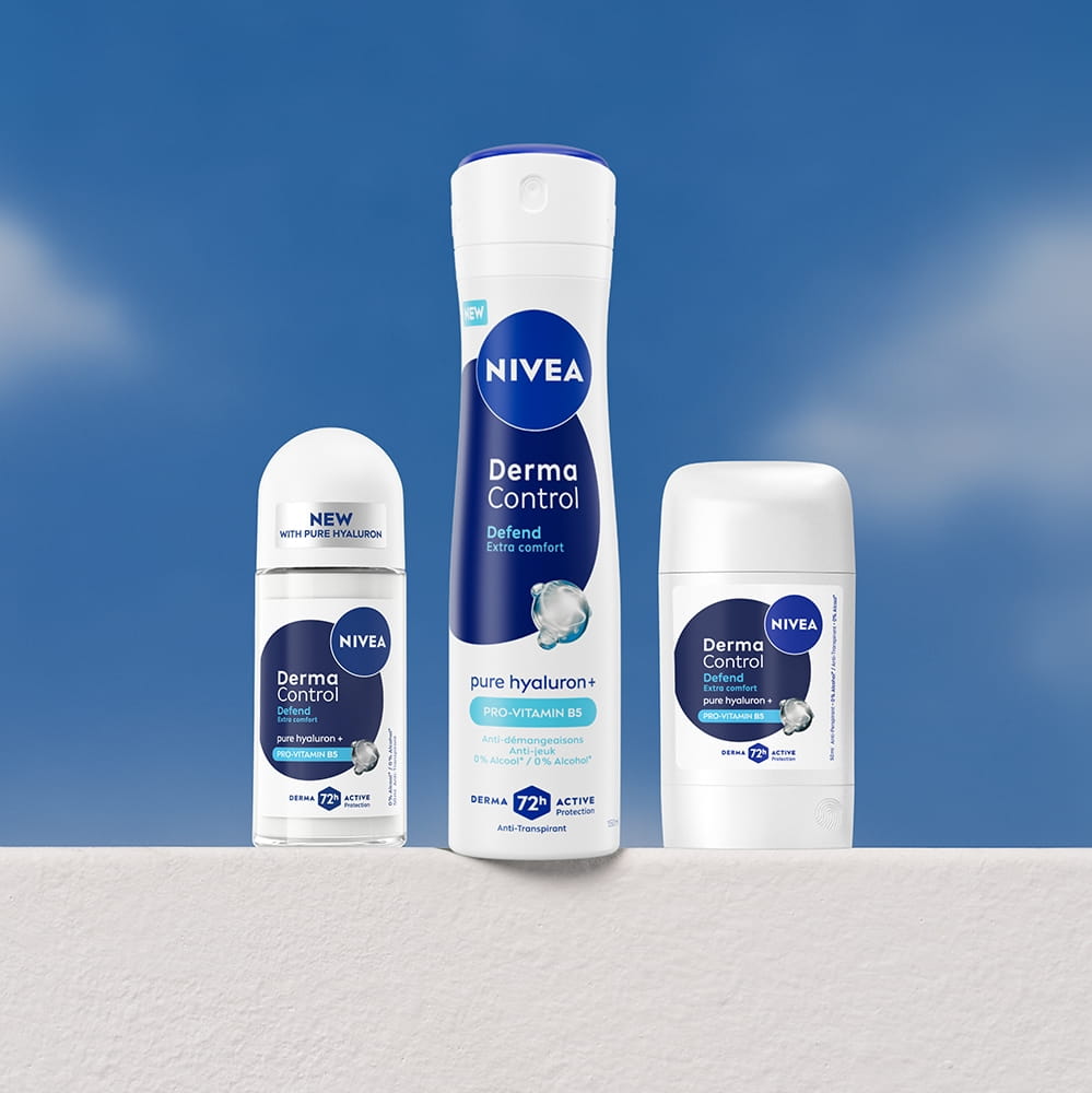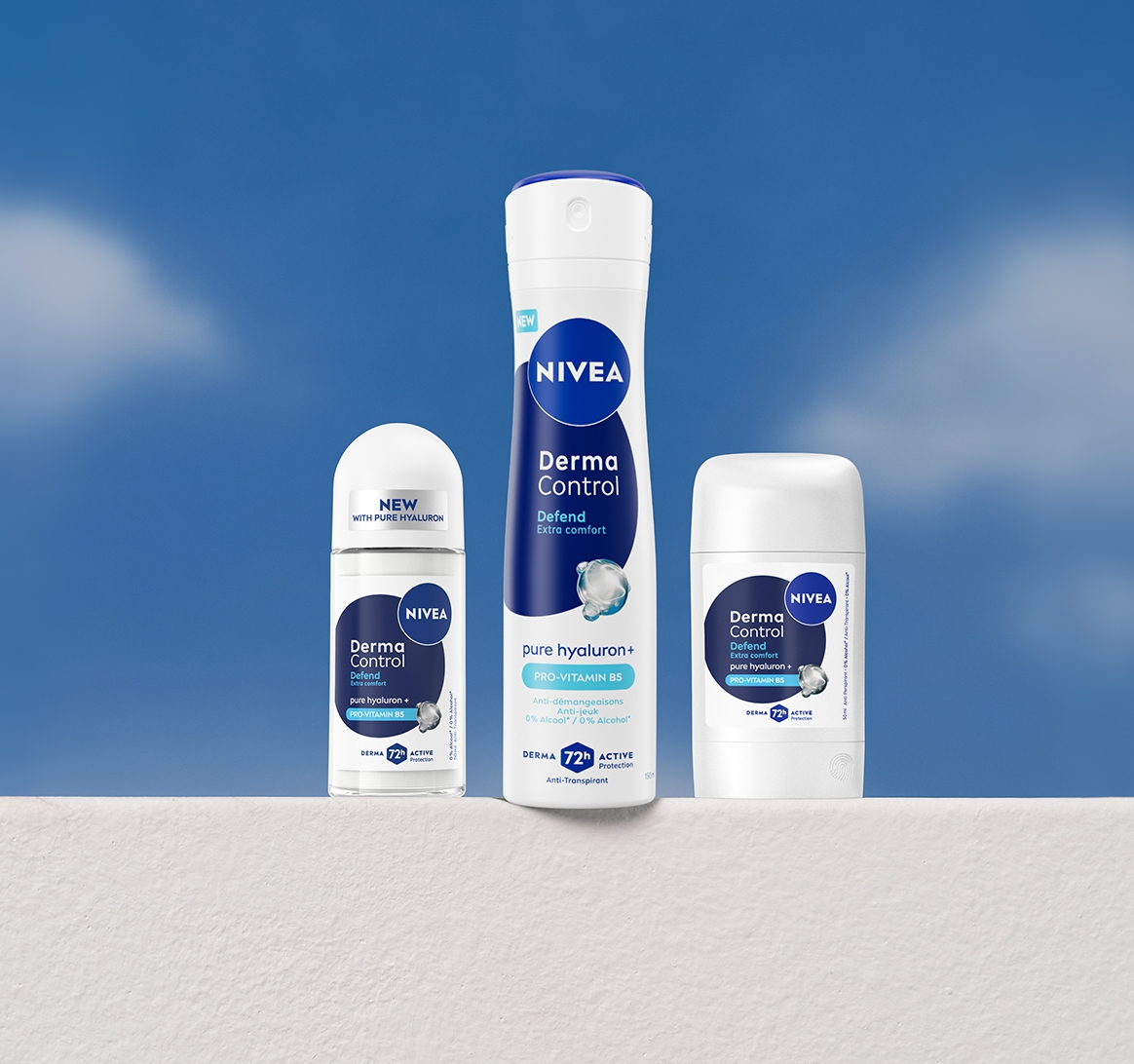 Een gevoelige huid reageert sneller op prikkels, zoals roodheid of jeuk. Kies daarom voor een deodorant die mild is en verzorgt. NIVEA Derma Control bevat puur Hyaluron en Vitamines om de huid te kalmeren. De Restore variant biedt extra zachte bescherming met een hypoallergene parfum. Speciaal ontwikkeld voor een frisse geur, zónder irritatie.