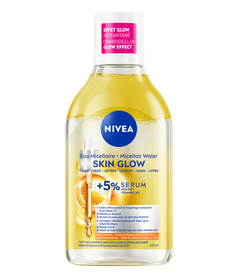 Begin met een grondige reiniging, die cruciaal is om make-up en onzuiverheden te verwijderen. Het NIVEA Skin Glow Serum Infused Micellair Water combineert een serum met Vitamine C & E met een Aminozuurcomplex dat de huid hydrateert en energie geeft, zonder een vettig laagje achter te laten. Deze stap bereidt de huid voor op de rest van de huidverzorgingsroutine en biedt een schone en frisse basis.