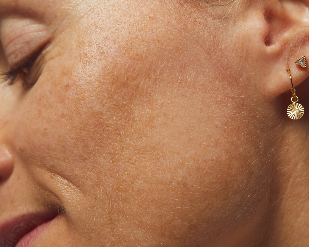 - Onregelmatige pigmentatie:Donkere vlekken of vlekkerige verkleuring, zoals sproeten, ouderdomsvlekken (ook wel levervlekken of solar lentigines) en melasma, kunnen ontstaan op aan de zon blootgestelde huid.