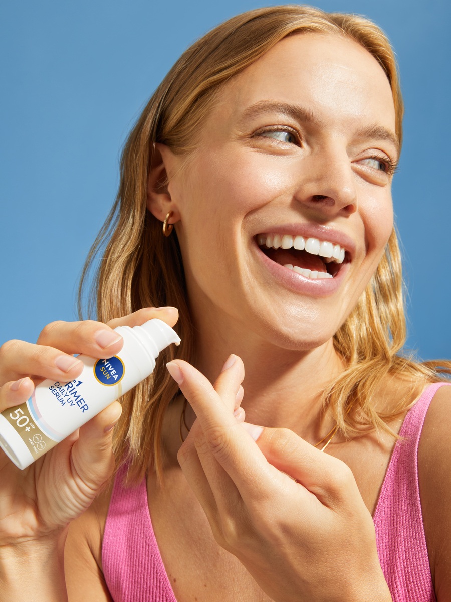 Zonnebrand voor het gezicht: breng dagelijks een gezichtszonnebrand aan als proactieve maatregel om je huid zowel binnen als buiten te beschermen. Ontdek NIVEA Invisible Daily Fluid SPF 50+, verrijkt met Licochalcone, een krachtige antioxidant, met een ultralichte, niet vettige fluïde formule die geen witte waas achterlaat.