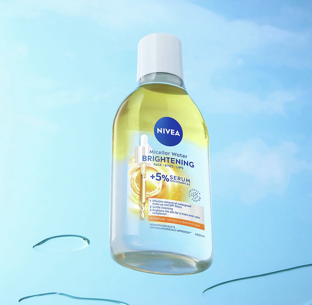NIVEA Skin Glow Serum Infused Micellar Water – Dit milde maar effectieve micellair water is verrijkt met 5% serum met vitamine C, vitamine E en een aminozuurcomplex. Het Reinig t, verheldert en Hydrateert de huid en verwijdert make-up en onzuiverheden. De formule met vitamine E en vitamine C helpt een egalere huidskleur en een stralende, glowende teint te bevorderen. Perfect voor dagelijks gebruik: het laat je huid fris, gehydrateerd en stralend aanvoelen, zonder naspoelen.