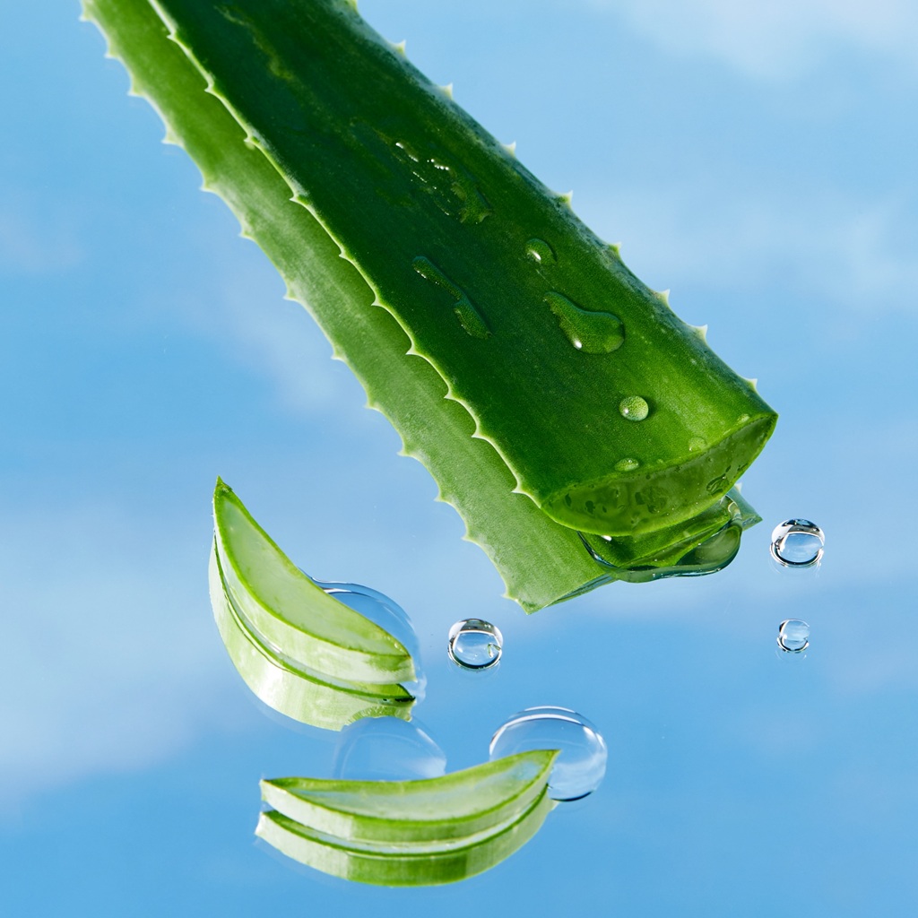 - Biologische aloë vera: bevat veel vitaminen en antioxidanten, staat bekend om zijn verfrissende eigenschappen die zonverbranding verlichten, hydrateert de droge huid en helpt de eerste tekenen van huidveroudering te voorkomen.