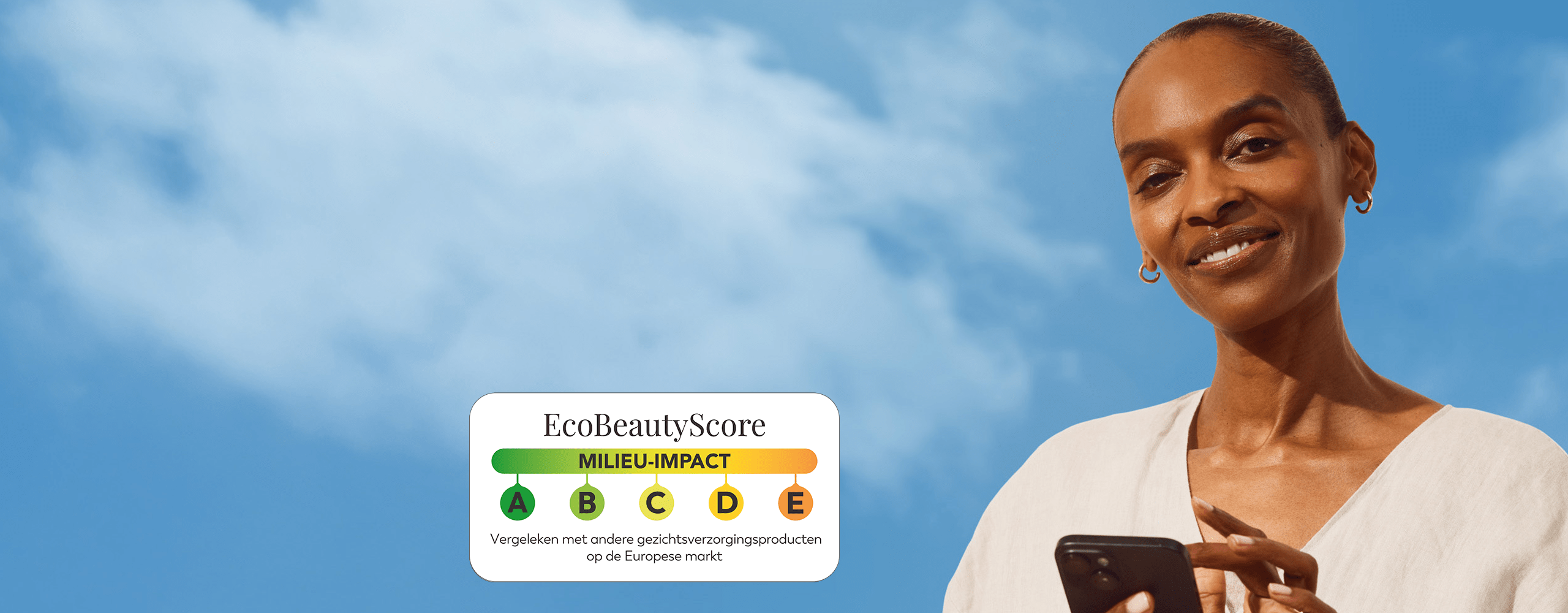 Als het nummer 1 wereldwijde huidverzorgingsmerk* willen we je helpen beter geïnformeerde duurzame keuzes te maken. Daarom hebben we ons aangesloten bij de EcoBeautyScore Association, een wereldwijd baanbrekend initiatief dat meer dan 70 cosmeticabedrijven en -verenigingen samenbrengt om een milieueffectbeoordeling en scoresysteem voor cosmetische producten te ontwikkelen dat wetenschappelijk onderbouwd en onafhankelijk geverifieerd is.