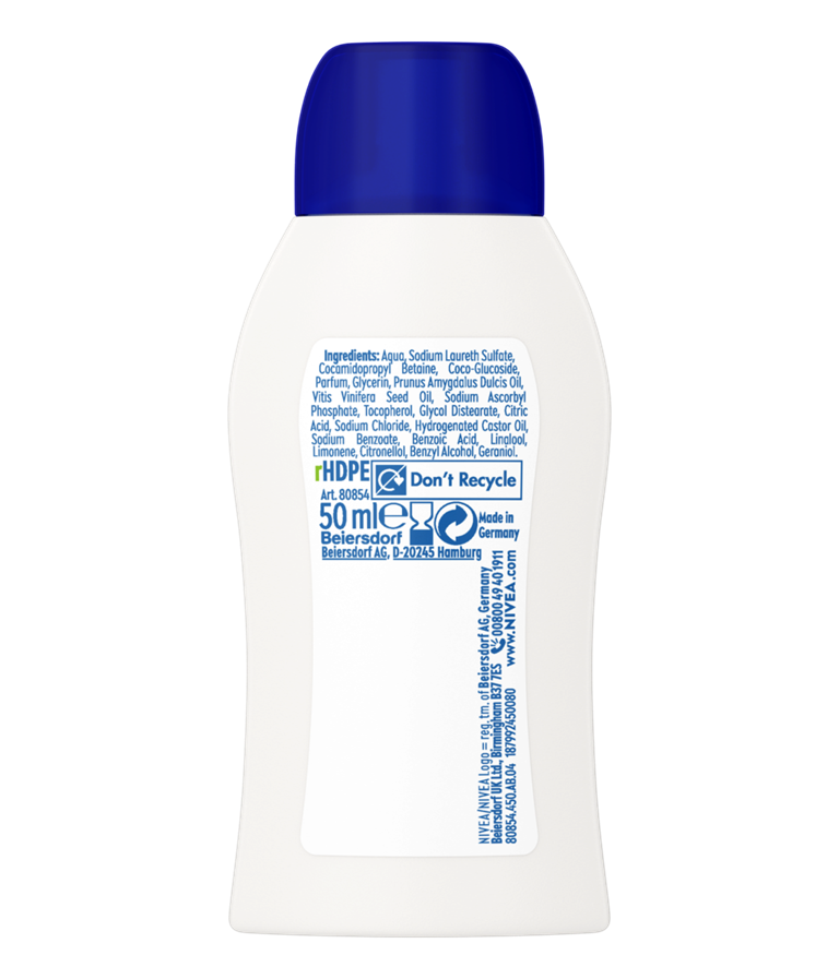 ReinigingTer verzorgingMild Dagelijks gebruikMet natuurlijke oliënZacht huidgevoelMicrobioom balansDuurzaamheid (NIVEA)Biologisch afbreekbare formuleVegan Gemaakt van gerecycled materiaalRecyclebaar