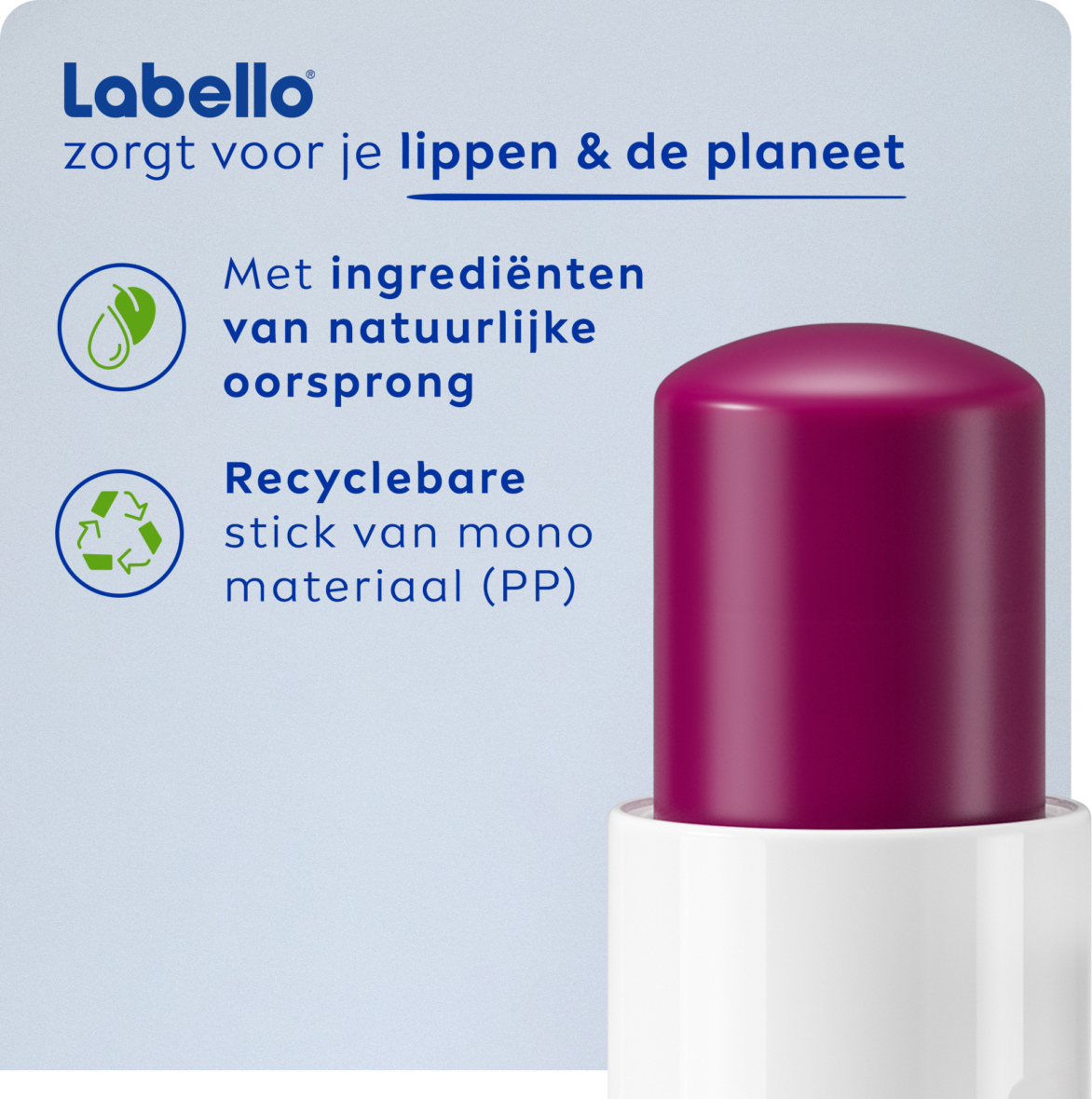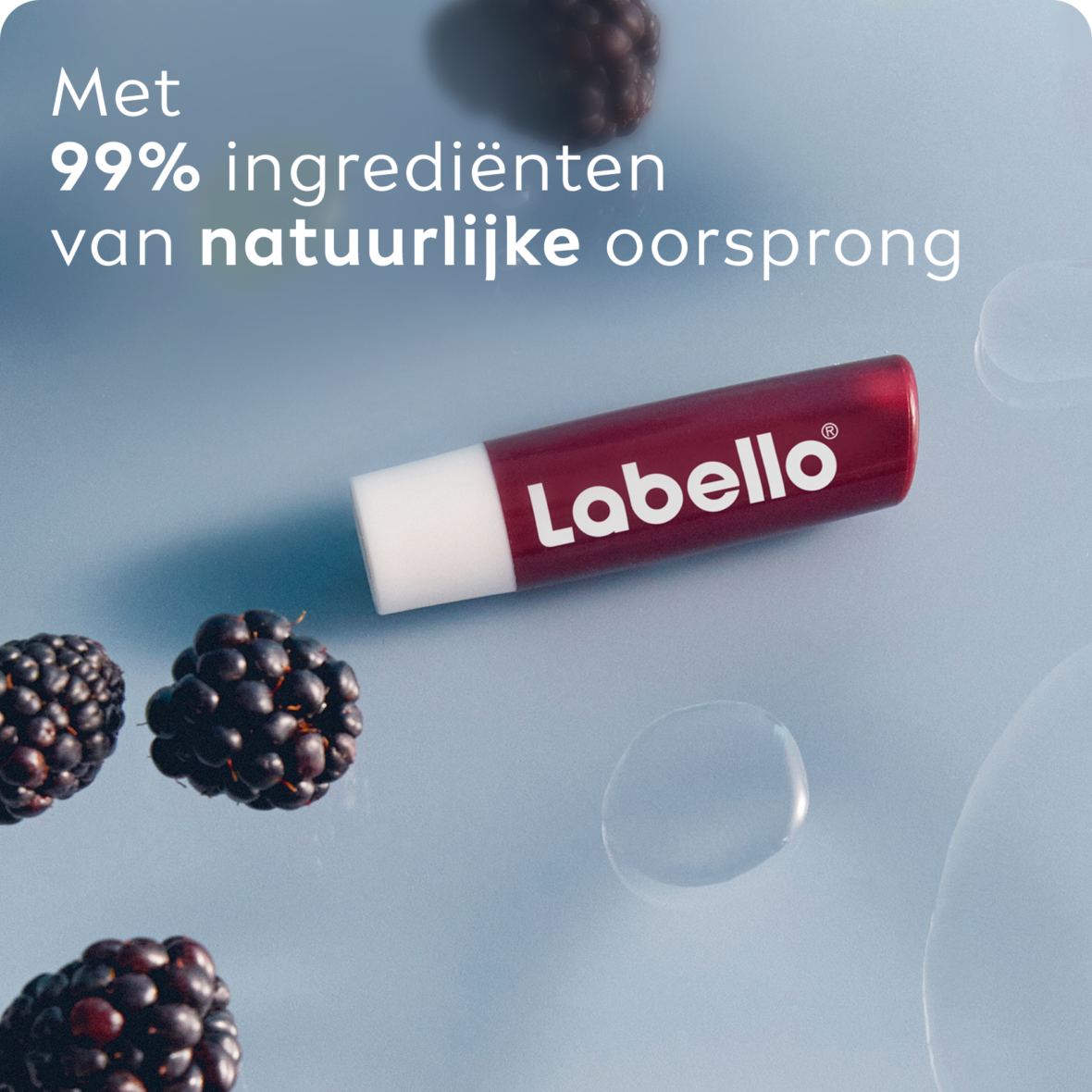 Labello Blackberry Shine hydrateert je lippen 24u* met een heerlijk zoet braambesaroma en een subtiele bordeaux glans!