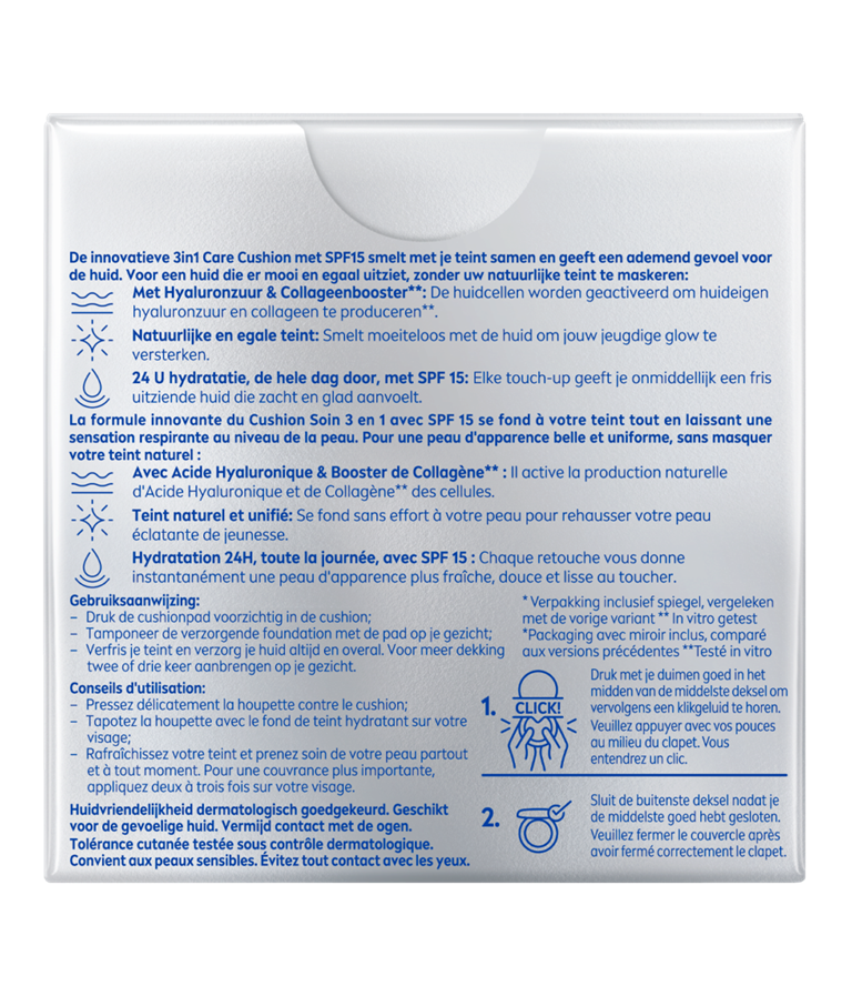 Ik heb de 3 in 1 care cushion in kleur medium dark ontvangen om te testen. De verpakking is erg praktisch om mee te nemen en te gebruiken, vooral door het spiegeltje. Het is erg licht dus makkelijk in mijn tasje mee te nemen. Het product ruikt erg lekker en voelt heel zacht aan op mijn gezicht. Dit komt door de ingrediënten, zoals hyaluronzuur. Je drukt de cushionpad naar wens op de cushion. Dit druk je zachtjes op je gezicht. Wil je meer product dan druk je iets harder op de cushion. Mijn gezicht krijgt een mooie glow, ziet er egaler uit en voelt zacht aan. Ik heb totaal niet het gevoel dat ik makeup op mijn gezicht heb, wat ik voor het dagelijks leven prettig vind. Enige minpunt vind ik de lage spf, met een spf 50 is dit een volledig product.
