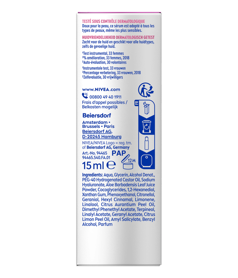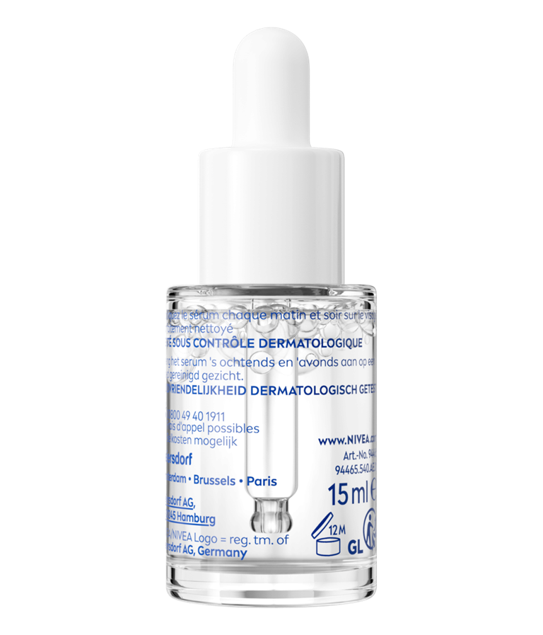 Dit Nivea serum komt in een luxe ogend flesje, met een handig pipet. Het pipet help om precies voldoende serum te doseren. Je hebt echt maar heel weinig nodig, een paar druppels is genoeg voor je hele gezicht en hals. Te veel smeren voelt niet fijn, dan wordt mn gezicht echt plakkerig. Het serum vult meteen de fijne lijntjes op. Dat valt echt op! Na een paar weken gebruik zie ik ook verschil in de diepere lijntjes (rimpels). Het serum ruikt heel subtiel, erg fijn. Ik ben hier blij mee.