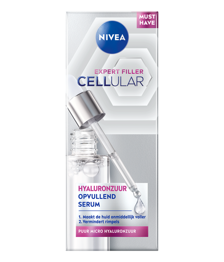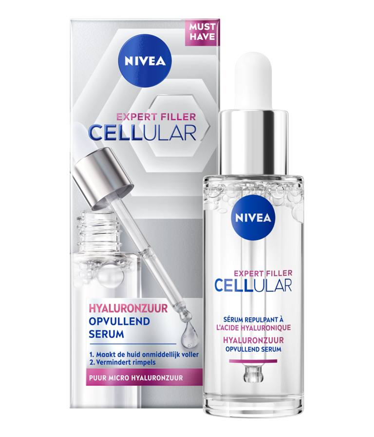 NIVEA Cellular Expert Filler Hyaluronzuur Opvullend Serum 30ml maakt de huid onmiddellijk voller en verminderd rimpels in 1 week.
