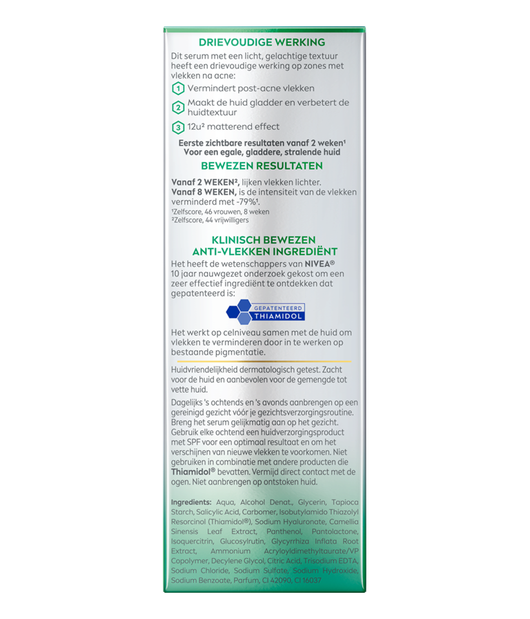 Ik heb dit product een week gebruikt in combinatie met een SPF 50 zoals geadviseerd op de verpakking. Na een week gebruik kreeg ik een allergische reactie op mijn gezicht waardoor ik allemaal buldjes kreeg op mijn huid dus ben gelijk gestopt met het gebruik. Wat niet fijn was aan de serum zelf was dat de geur erg sterk naar alcohol rook en na het aanbrengen erg plakkerig voelde. Ook droogde het product erg snel uit. Als ik de andere recensies over dit product lees zie ik ook dat het niet heeft geholpen met de anti-acne vlekken. Hier kan ik niks over zeggen omdat ik het product na een week een allergische reactie heb gekregen.