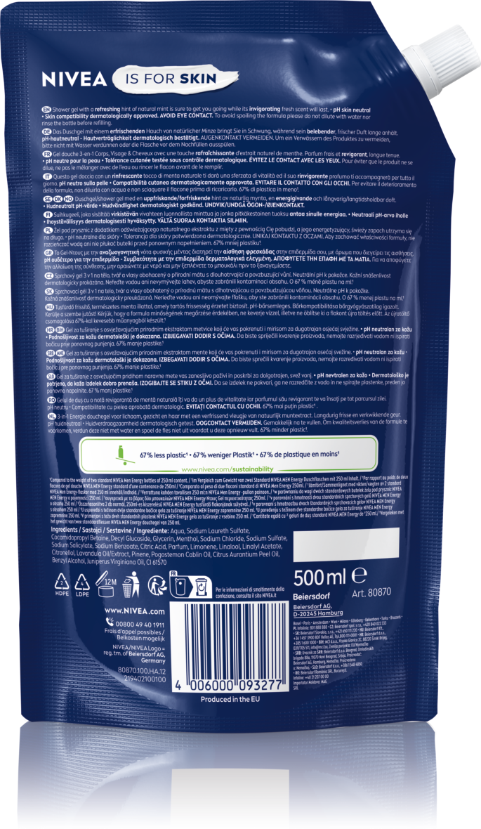 NIVEA MEN Energy Douchegel Navulverpakking 500ml