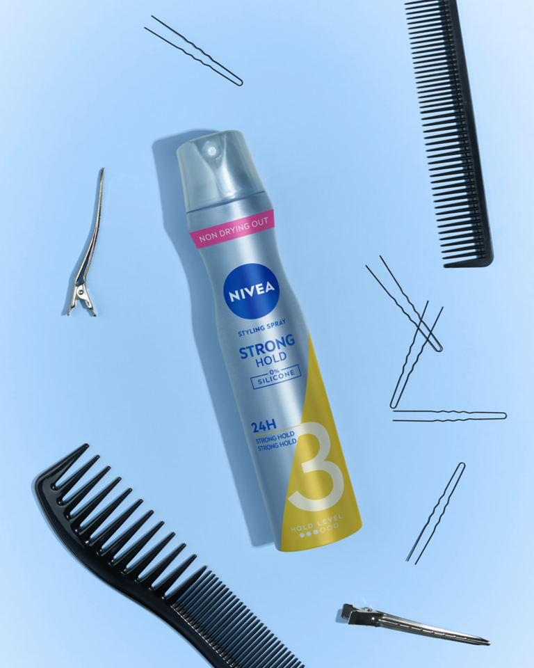 NIVEA Strong Hold Styling Spray 250ml, met Panthenol & Vitamine B3 beschermt je haar en geeft 24* uur sterke fixatie.