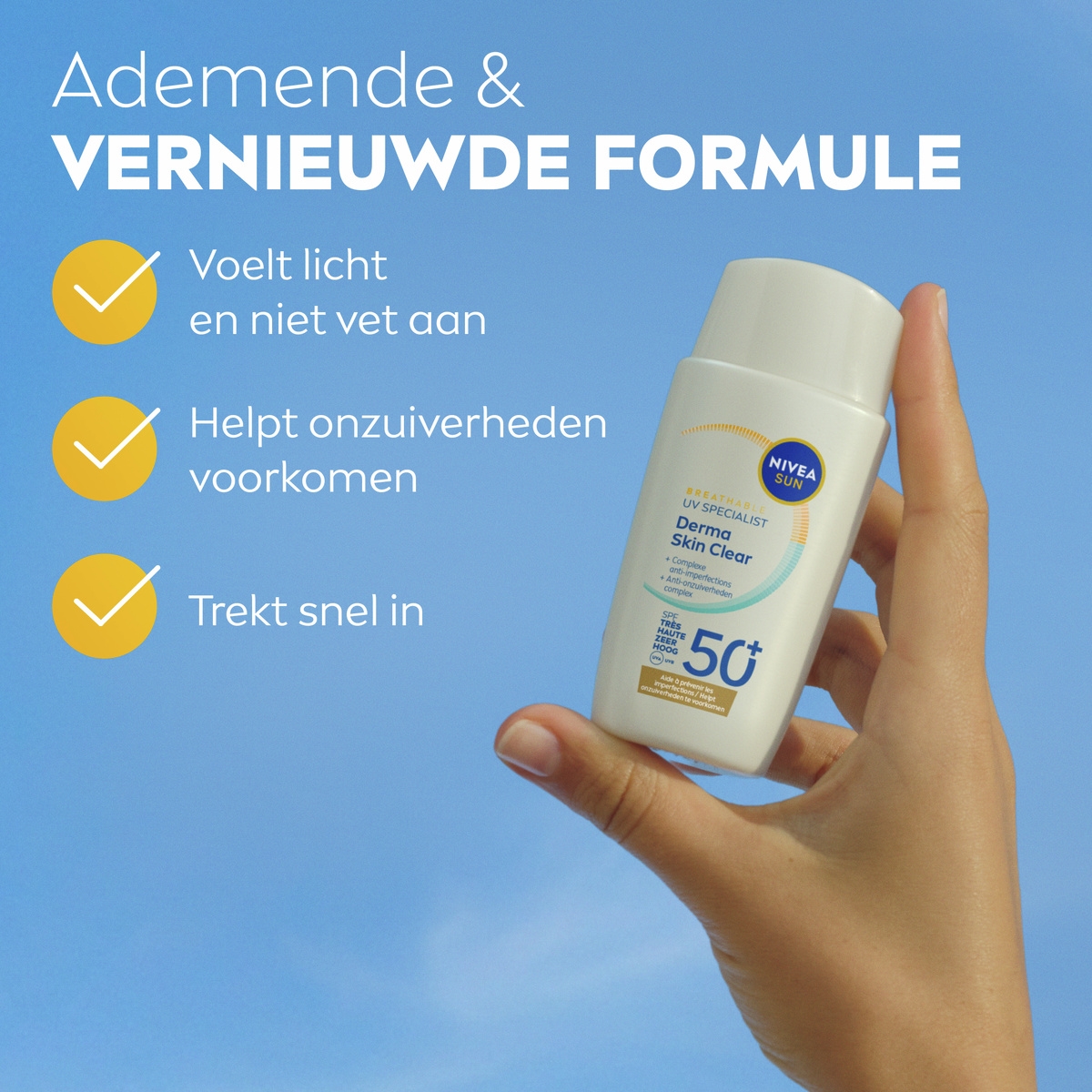 - BREATHABLE UV-BESCHERMING – Geavanceerde UV-technologie met SPF 50+ en PA++++ bestrijdt fotoveroudering zonder poriën te verstoppen